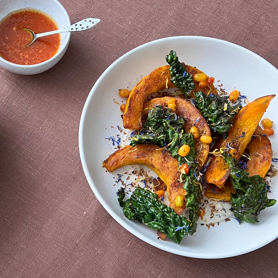 Til de, der ønsker et grønt alternativ, har vores kokke skabt en vegetarisk julemenu med terrine af jordskok anrettet med fritteret jordskok, confiteret og røget pastinak samt en kraftig Karl Johan sauce. Hertil serveres syltet rødkål og to slags kartofler.