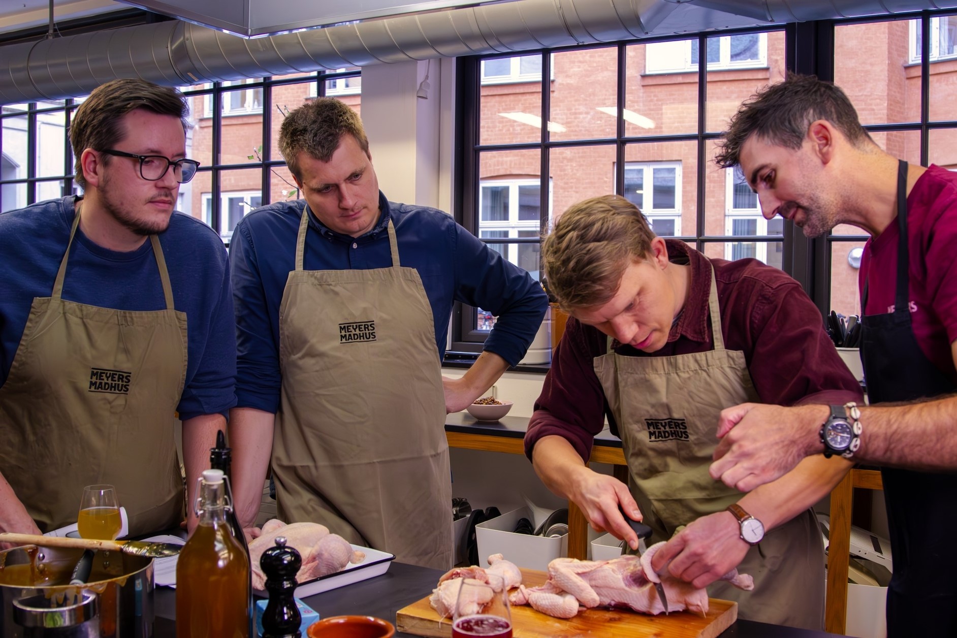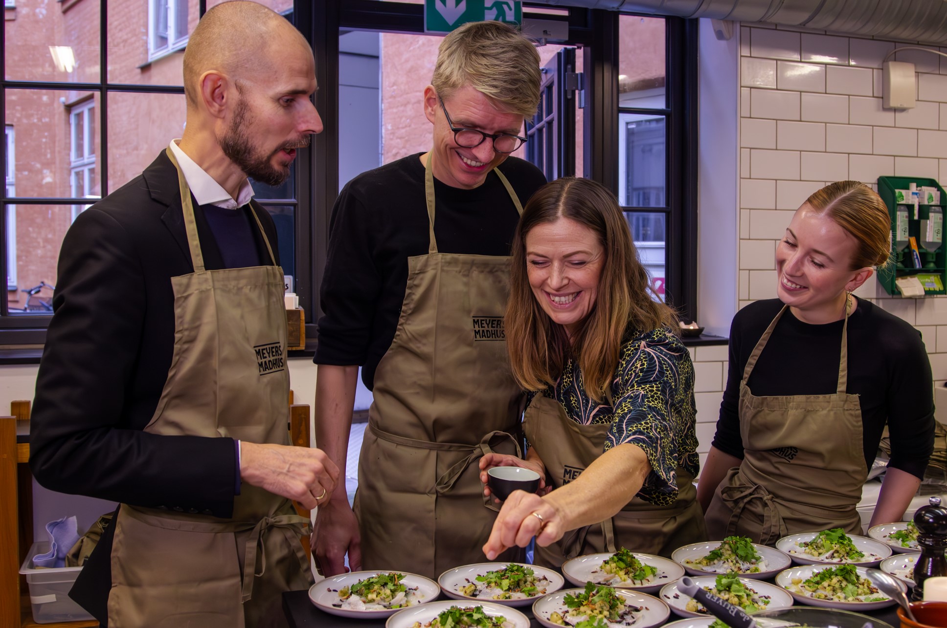 Teambuilding i København bliver noget helt særligt, når I samles om madlavning i Meyers Madhus. Lad os skabe rammerne for en hyggelig dag eller aften sammen med jeres kollegaer eller samarbejdspartnere. I bestemmer tempoet og hvor lang tid I vil stå bag gryderne, når vores dygtige kokke guider jer trygt igennem menuen med økologiske og sæsonnære råvarer. Vi dækker langbordet, skænker op i glasset og sørger for at I får en mindeværdig oplevelse, fyldt med god mad, værtskab og sjove kulinariske udfordringer.
