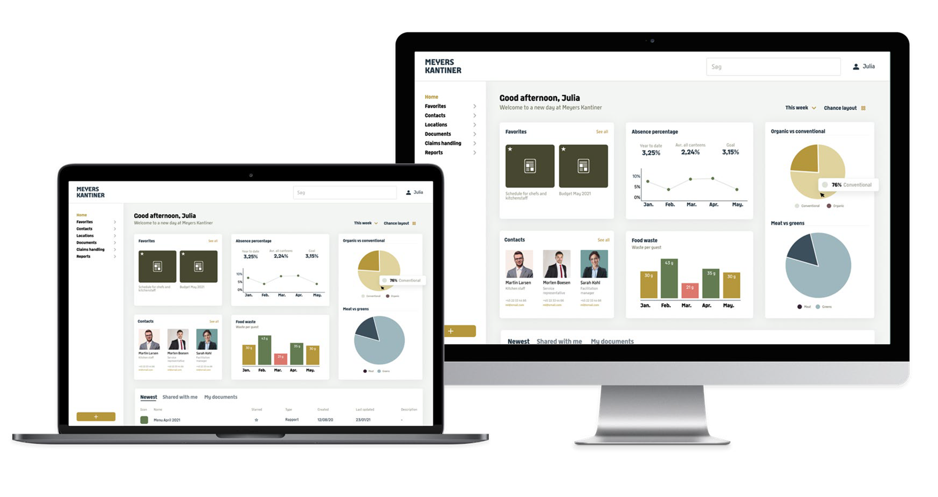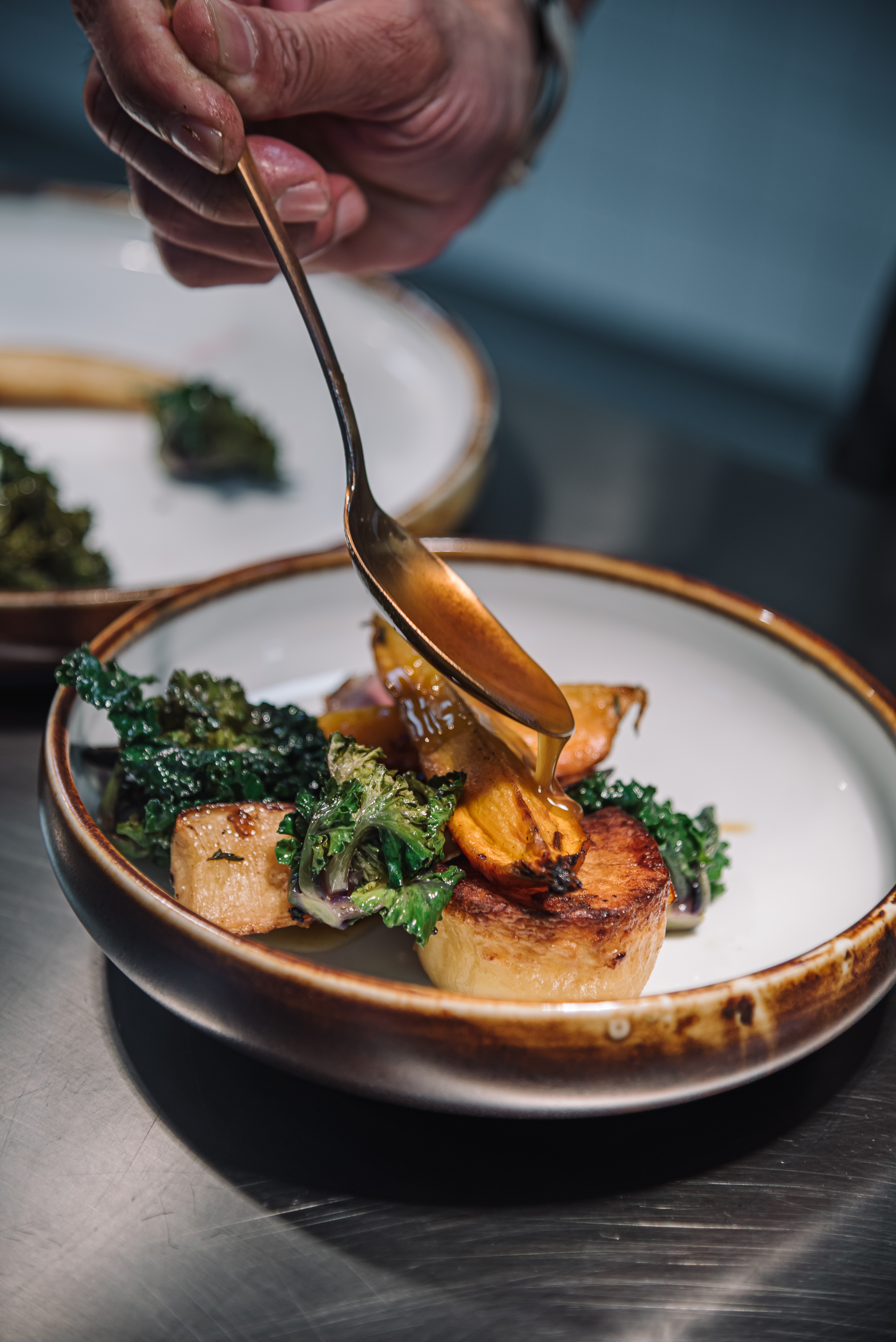 Vi er skabt ud af tankerne bag Det Nordiske Køkken, der først og fremmest søger at skabe velsmag via de råvarer, der er særligt gode på vores breddegrader. Vi har stærke ambitioner på madens vegne og har klare holdninger til økologi, dyrevelfærd og klimapåvirkning. Det er med dét afsæt, at vores dygtige kokketalenter er forkæmpere for en frokosttallerken, der ikke kun er velsmagende, men også sund for den enkelte og bæredygtig for verden.