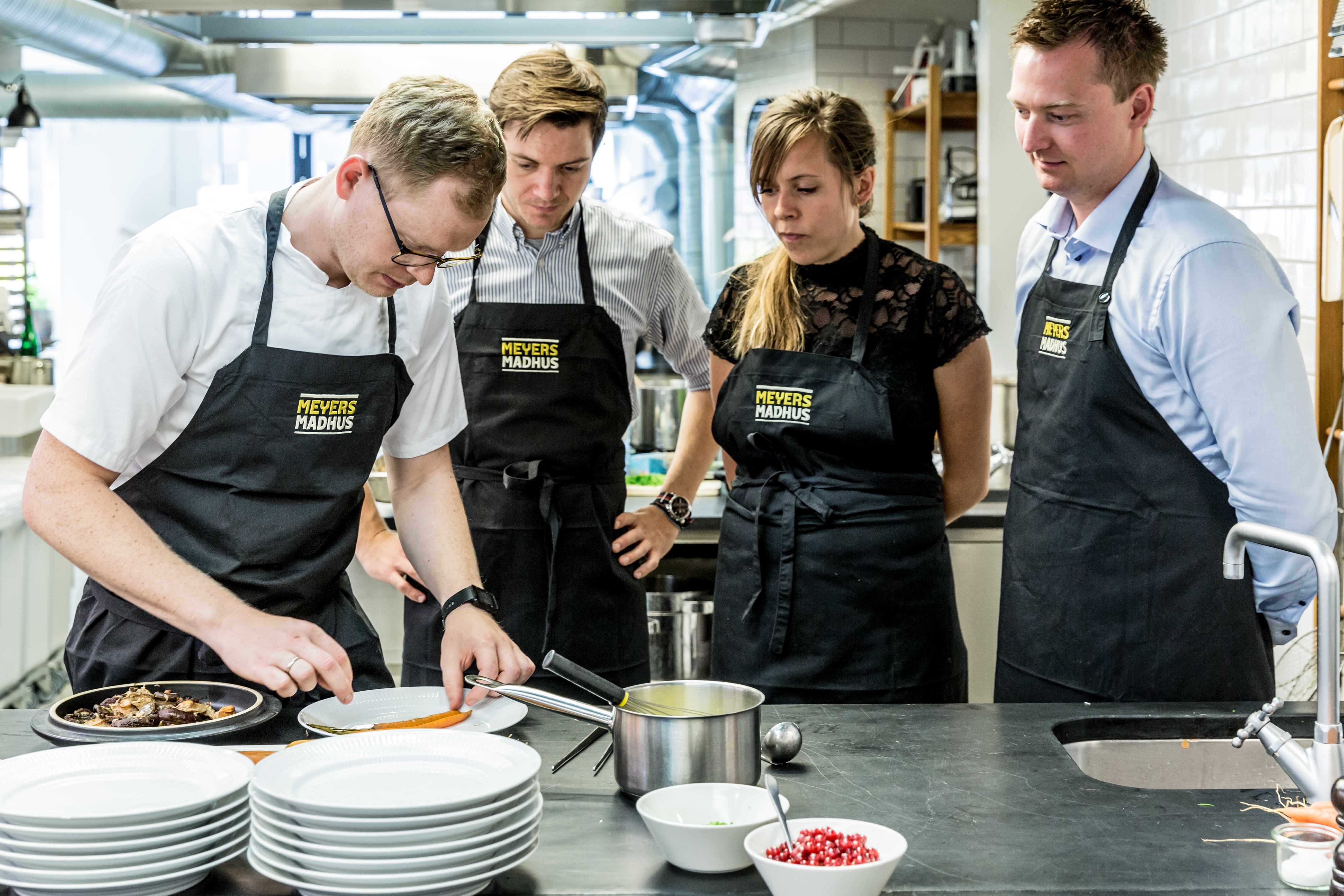 I Meyers Madhus, som er vores madskole midt i København, kan du som privatperson komme på madkursus med nogle af landets bedste kokke eller lære at bage brød, som vi gør det i Meyers Bagerier. Du kan udforske helt nye gastronomiske territorier eller få frisk inspiration til alt fra grønnere hverdagsmad til avancerede teknikker, som du kan imponere dine gæster med. Det giver madoplevelser for livet, uanset om du er nybegynder eller passioneret amatørkok.