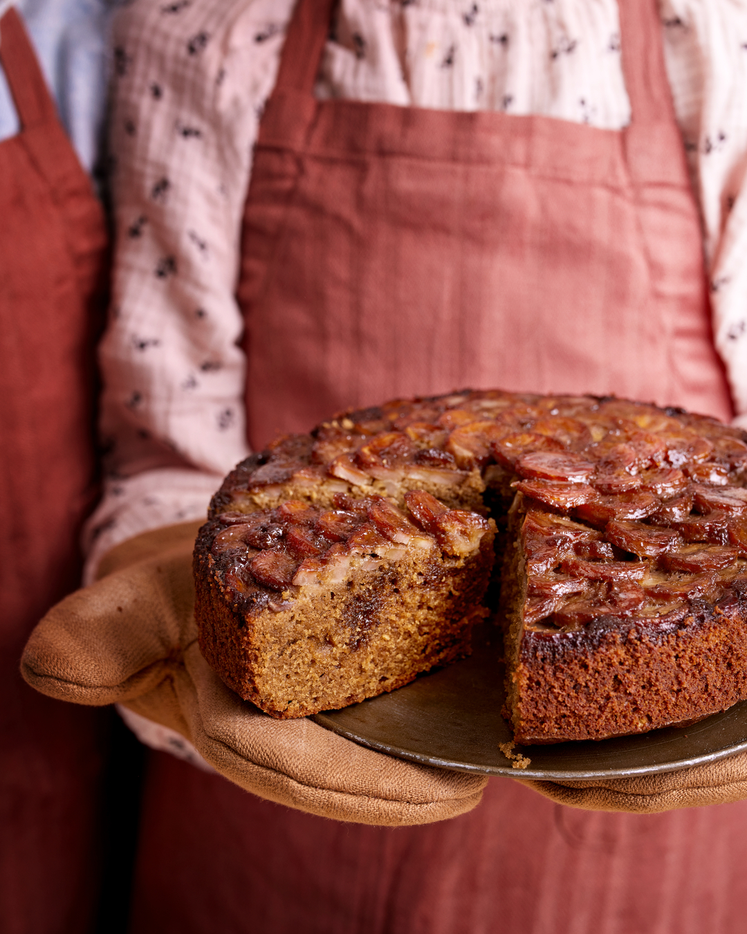 Denne banankage er nem at lave og indeholder få ingredienser. Når banankagen vendes på hovedet til sidst, har den et smukt, karamelliseret mønster.