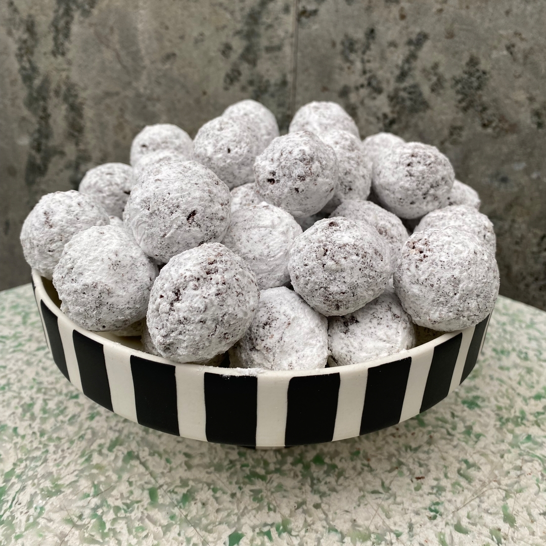 Vores kager er bagt med økologisk smør og mel, ægte vanilje, den bedste chokolade, marcipan med en tårnhøj mandelprocent og en række andre gode sager, der sikrer, at vores julebag smager, som julebag skal.