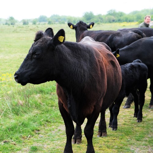 Det er ikke tilfældigt, at det er denne okserace, som Bente og Karsten holder. Aberdeen-Angus er nemlig særligt velegnet til afgræsning og naturpleje. Hver dag bidrager køerne altså til naturplejen af Livø og er med til at opretholde den frodige natur og høje biodiversitet på Limfjordsøen. Vi samarbejder i dag med Bente og Karsten på ottende år, og det er en stor fornøjelse at kunne bakke op om deres aktiviteter på gården.