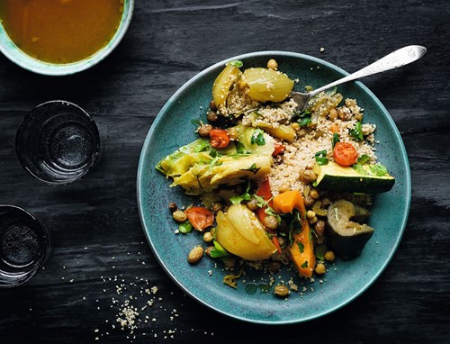 Til dagens frokostmenu har Alan hentet inspiration fra sin hjemegn med fokus på farverige, krydrede og sommerlige retter, hvor der bruges rigeligt af de klassiske krydderier som koriander, mynte, spidskommen og sumak sammen med friske grøntsager, fladbrød og dyppelse. Det er Alans håb, at frokostgæsterne kan fornemme smagenuancerne fra de frodige dale langs floderne i Syrien.