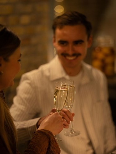 Fejr kærligheden på toppen af Christiansborg Slot med højt til loftet og udsyn over Københavns tage. Vi har sammensat en menu med kærlighedstoner og røde nuancer, som indledes med et glas lyserøde bobler.