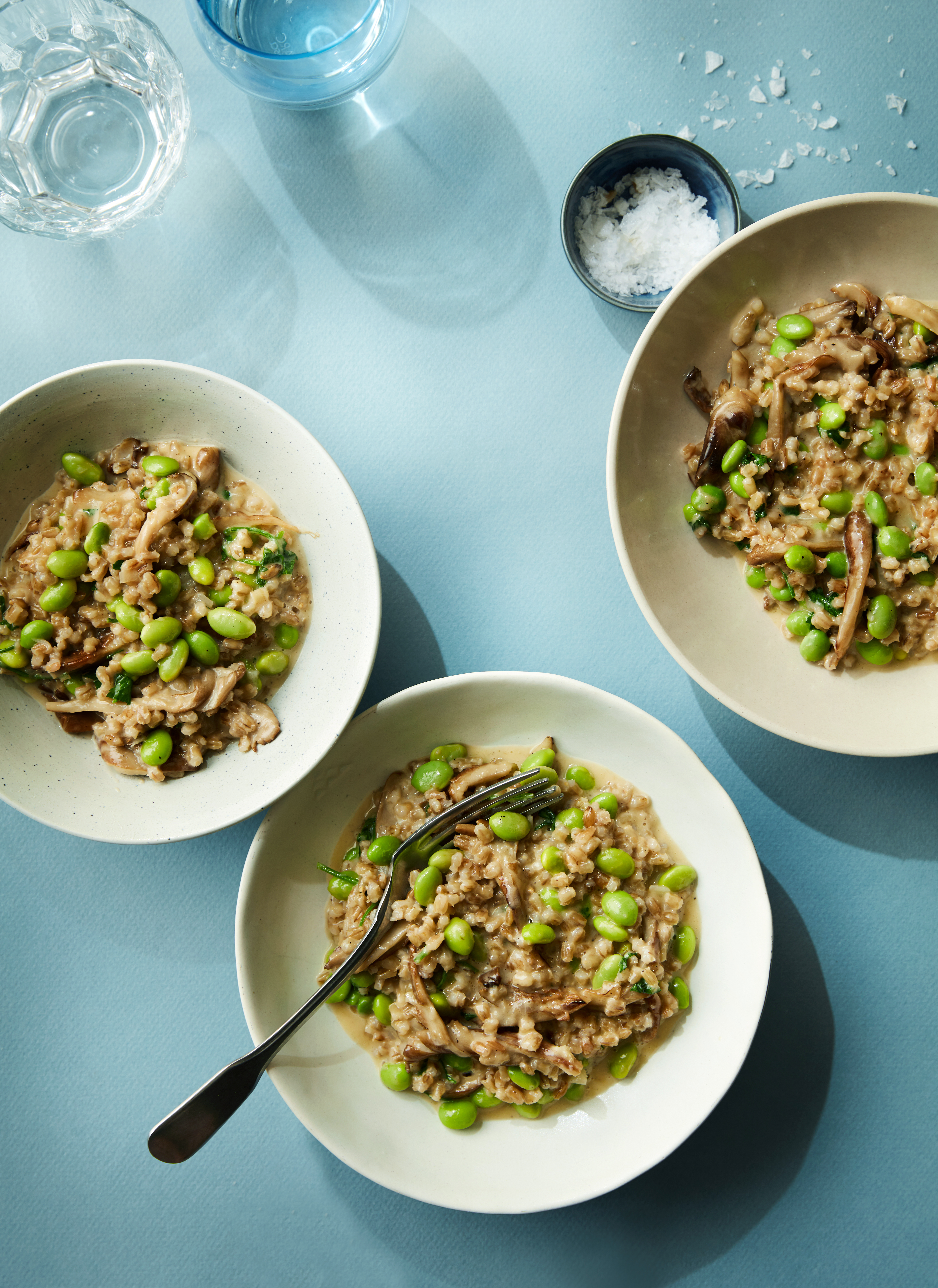 Kornotto med svampe og edamamebønner
