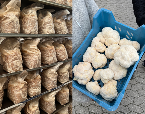 De første år hos Beyond Coffee blev brugt på eksperimentering og på at forfine processen, sådan at de i dag kan dyrke to slags svampe: østershatte i kaffegrums og lion’s mane i savsmuld - begge slags i containere. Her er der et koldt, mørkt og fugtigt klima, som er ideelt for svampenes dyrkningsfase.