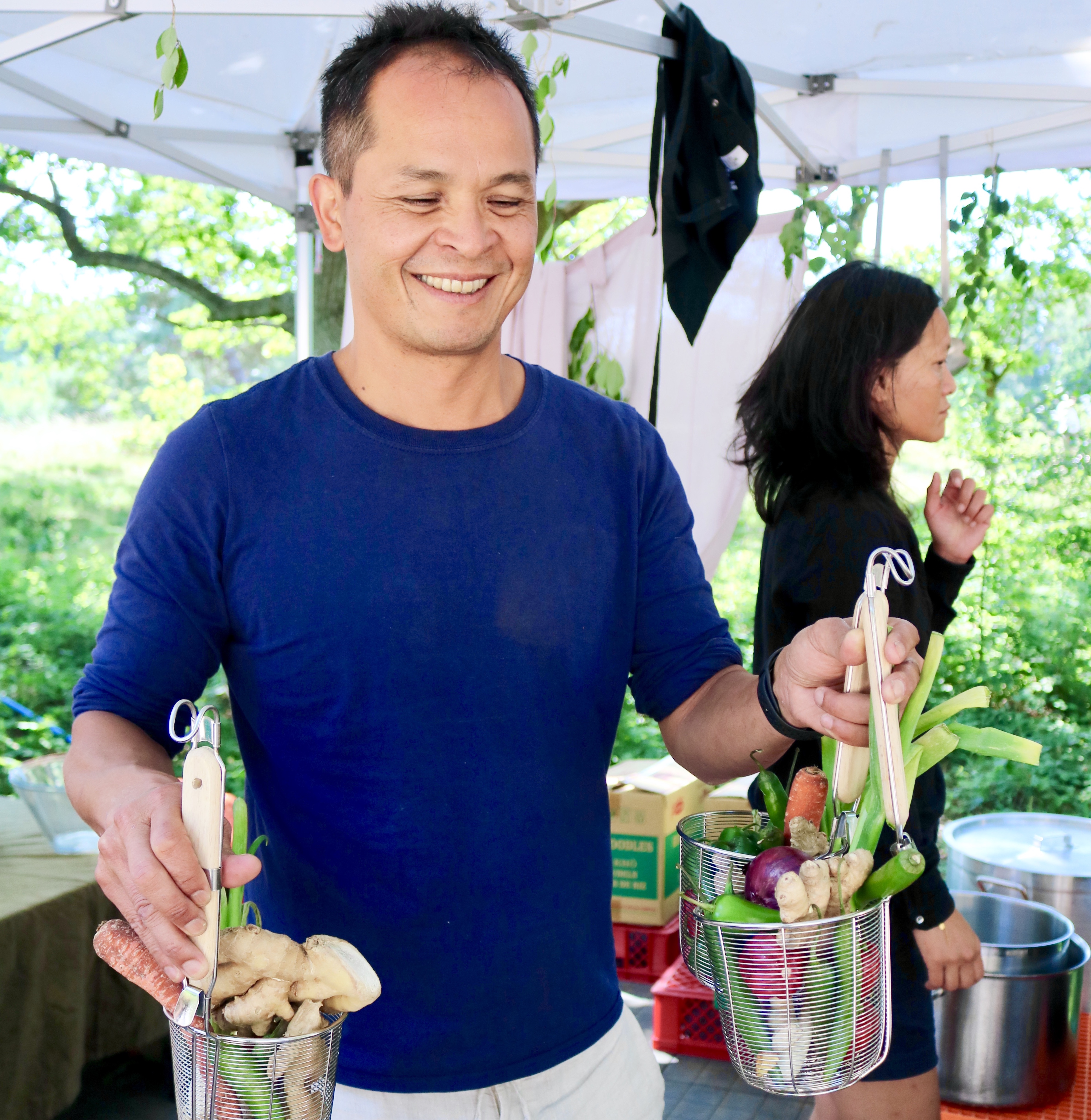 Har du gæstet vores sommerfristed Verdens Bedste Skovtur ved Udsholt Strand i den forgangne weekend eller starten af uge 29, har du måske - allerede fra middagstid - oplevet et halvt til et helt dusin mennesker med vietnamesiske såvel som danske aner defilere omkring på pladsen slæbende på enorme stålgryder, papkasser i flyttestørrelsen proppet med risnudler og bugnende fletfade læsset med ingefær, chili, løg og friske urter. Familien Vo brugte nemlig timevis på at ramme den helt rette intensitet og smagskompleksitet i den oksekødsphở, der hver aften blev revet væk af gæsterne i skovbrynet.