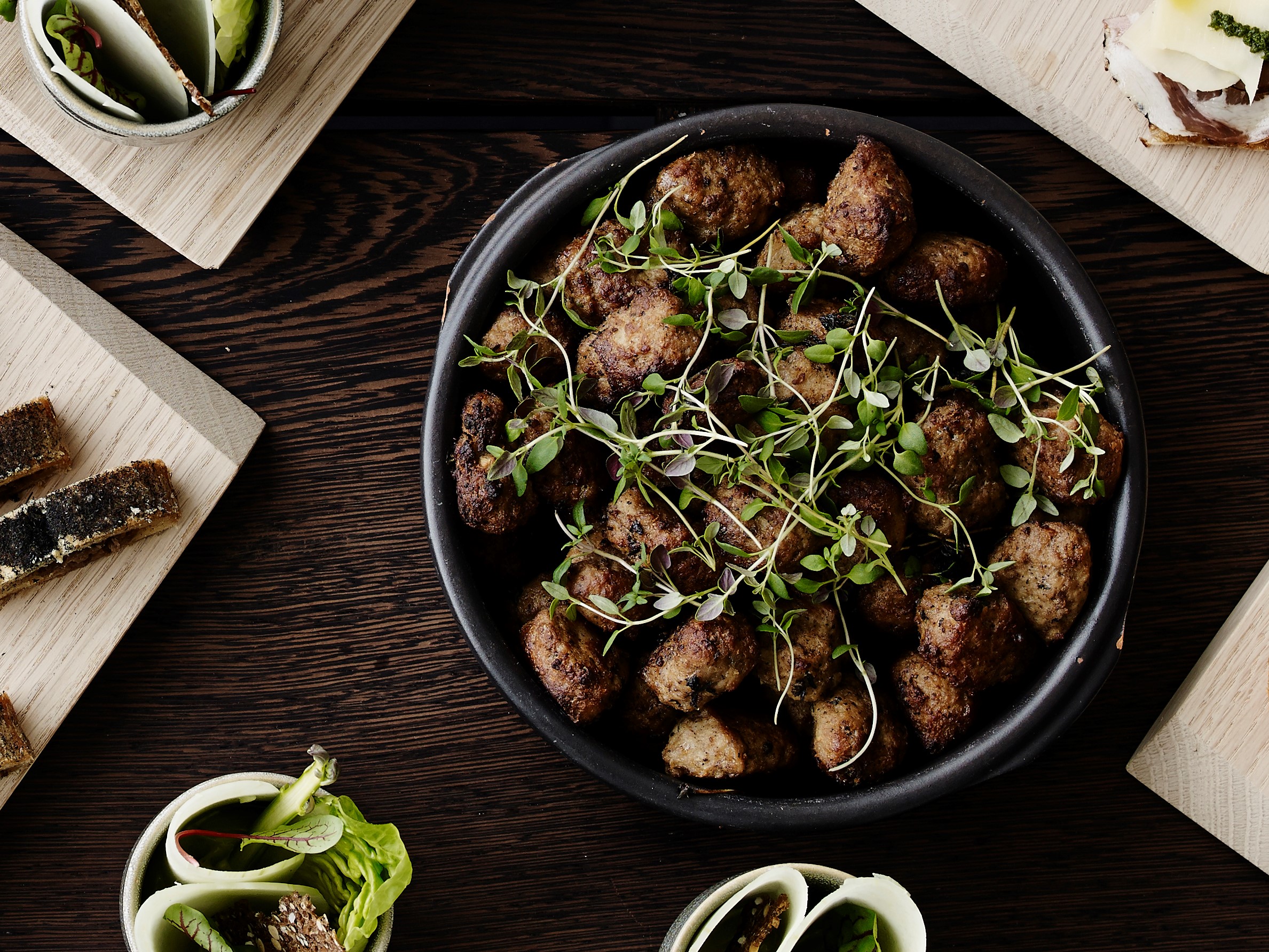 Sæt farsen i køleskabet, og lad den trække i ½-1 time inden stegningen, så smagen af løg og timian trækker ud i farsen, og farsen samtidig ”sætter” sig og bliver fast og god at stege.