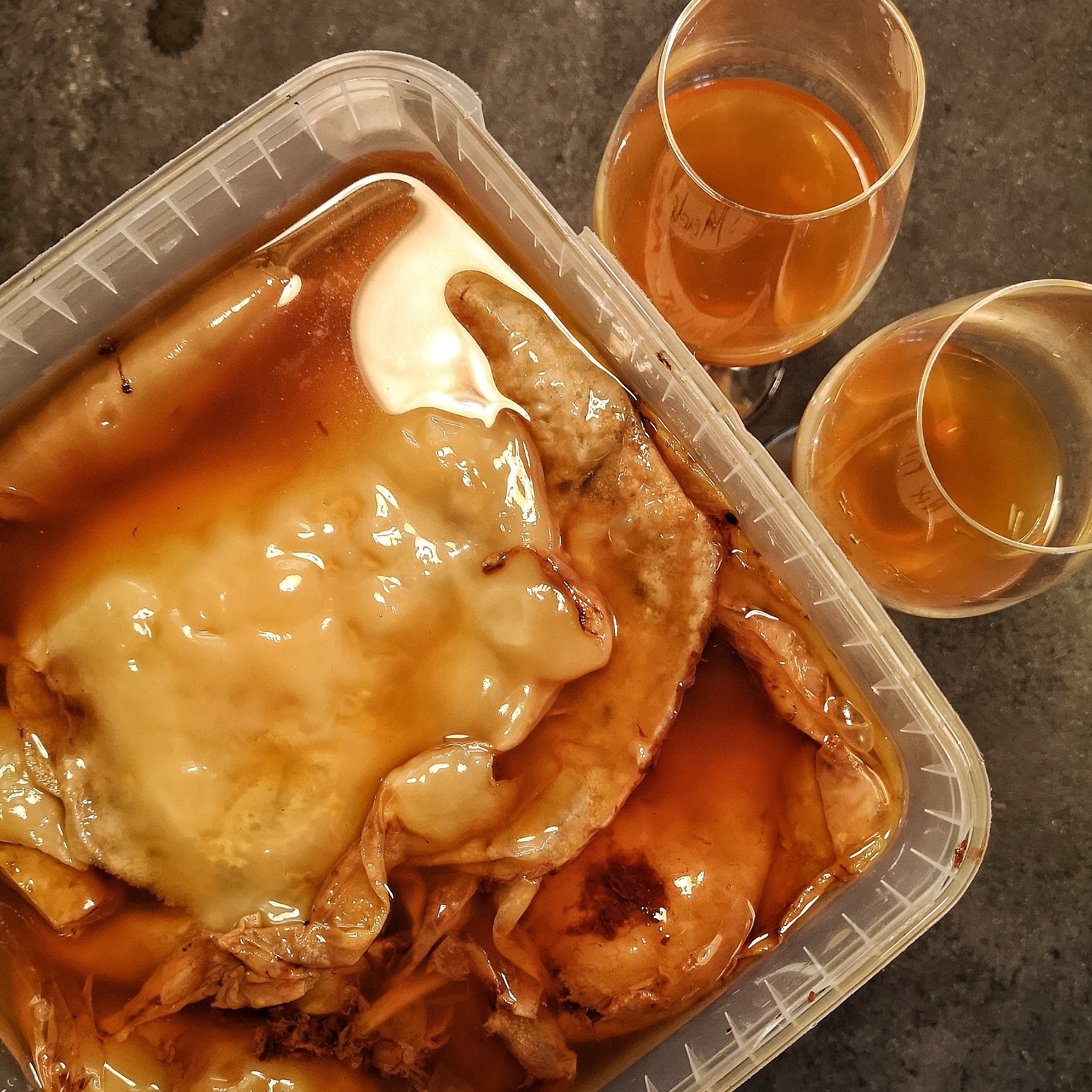Kaffe kombuchaen skal stå ved en jævn stuetemperatur i ca. 8-10 dage, alt efter hvor varm din stue er. Undervejs er det vigtigt at smage på den, jo længere tid den står jo mere syre udvikles. Det gælder så om at smage sig frem til en balance man finder passende.