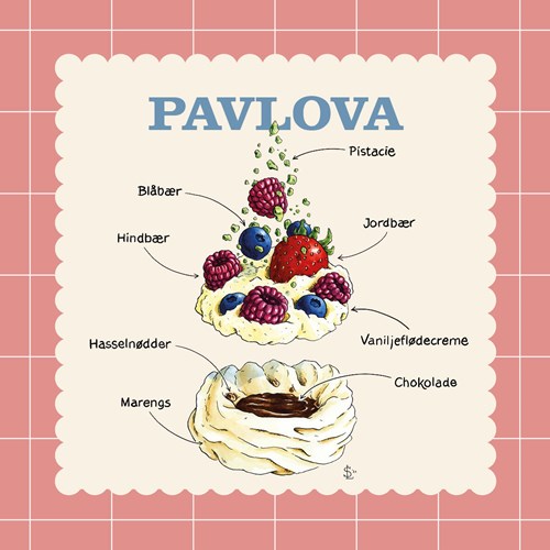 Sprød udenpå og blød og skumfidus-agtig indeni – pavlova er en af de mest imponerende og samtidig enkle desserter, du kan servere. Den består af en luftig marengsbund toppet med flødeskum og friske bær, og den egner sig perfekt som sommerdessert eller til festlige lejligheder. Ribs, brombær og solbær er også gode pavlova-bær. Jordbær er fine, men de må ikke fylde for meget i det samlede bærbillede, der skal være syrligt. Og bærrene skal endelig ikke sukres.