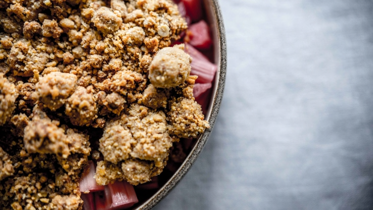 Vask rabarberne, skær dem i grove tern og vend dem med sukker, citronskal og –saft. Læg dem i et ovnfast serveringsfad og bag dem i ovnen ved 180° i 10-15 minutter. Imens hakkes smør, mel, sukker og salt sammen til grove krummer. Puls det eventuelt i en foodprocessor. Tag rabarberne ud af ovnen og fordel smuldredejen over i et jævnt lag. Sæt fadet tilbage i ovnen og bag kagen yderligere 35-40 minutter. Spis kagen lun med cremefraiche eller flødeskum.