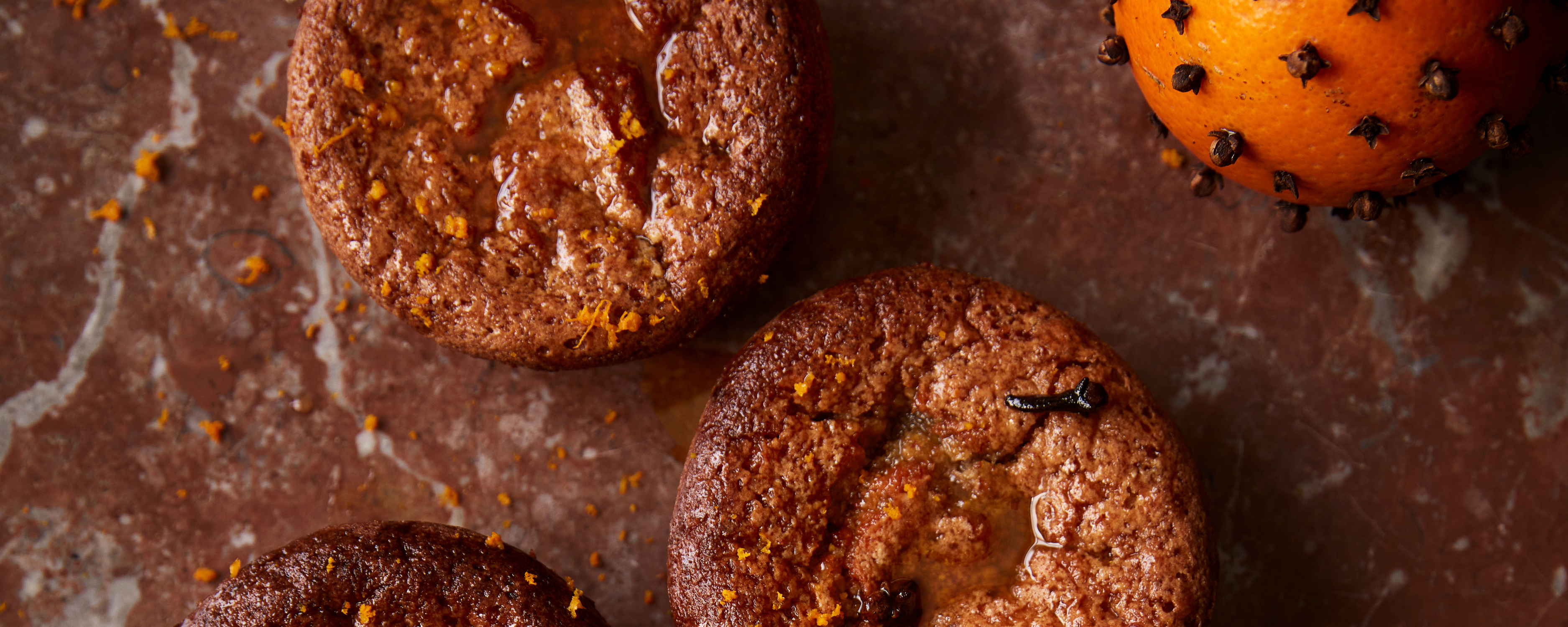 Små mandel-appelsinkager med olivenolie og krydderier