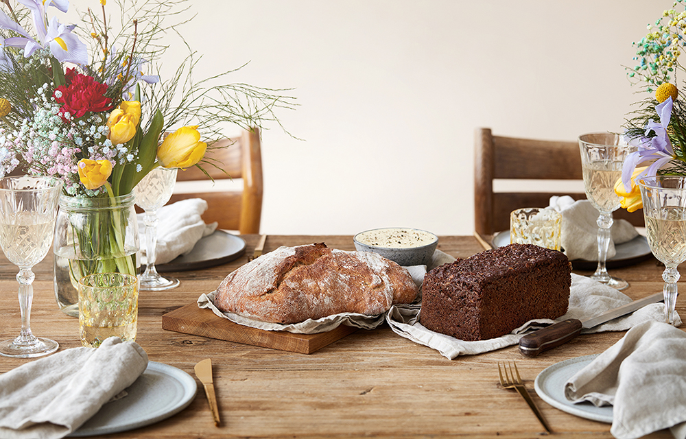 Arabisk brødsalat med nye grøntsager, grillet hvedebrød og yoghurt