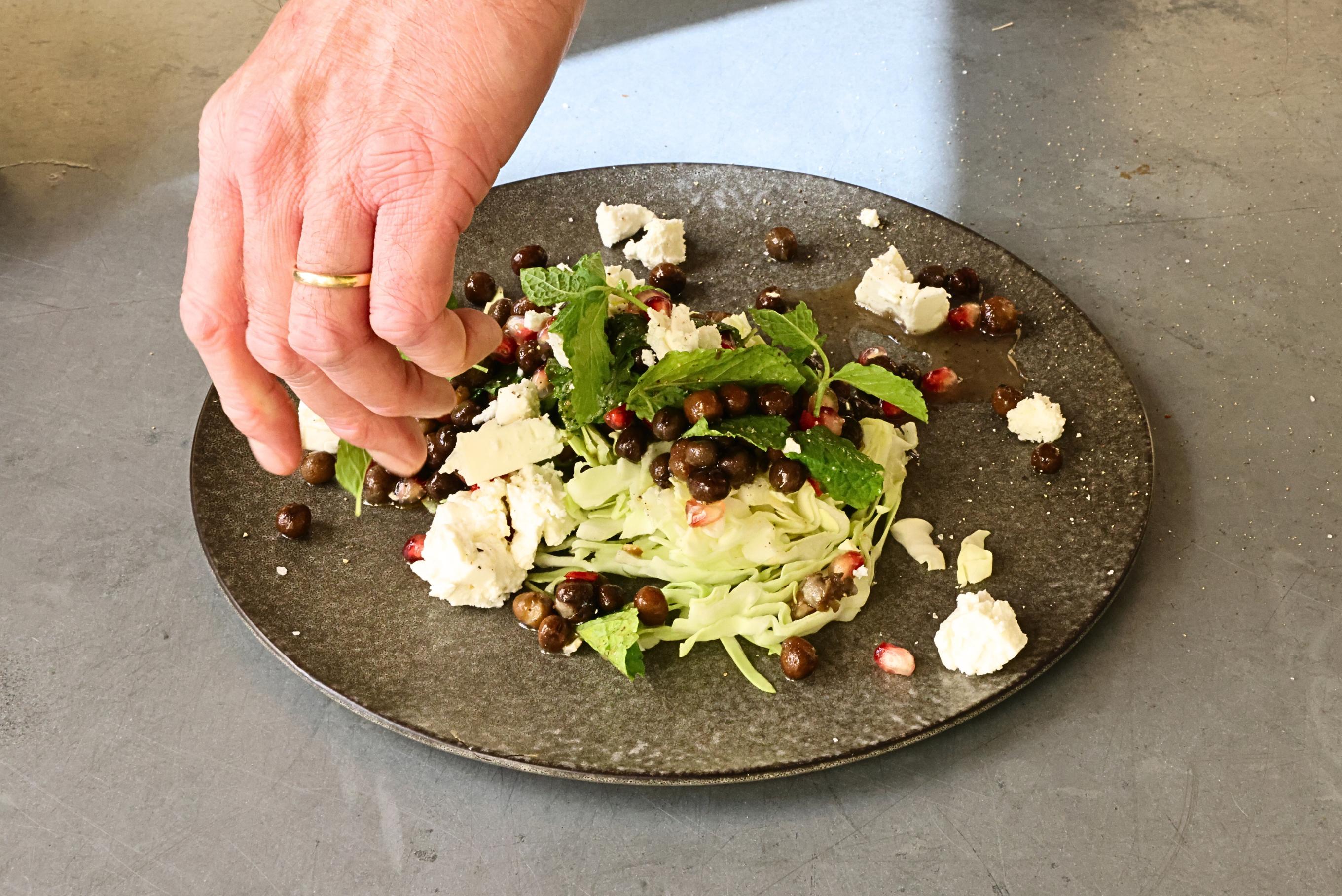 GRÆSKAR-KÅLSALAT MED RISTEDE SIRIUS ÆRTER OG GRÆSKARHUMMUS